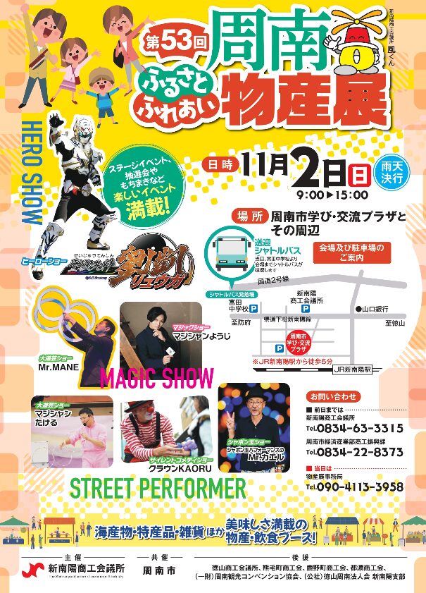 CONTENT コンテンツ TOP CONTENT 【出演情報】周南物産展にてマジックショー! ブログ 2025/11/01 【出演情報】周南物産展にてマジックショー! 2025年11月2日(土)は第53回ふるさとふれあい周南物産展にお邪魔させていただきます! たくさんのパフォーマーによるショーやヒーローショー、餅まきなどなど様々な企画が盛りだくさんです! ぜひ遊びに来てくださいねー! back to allnext RELATED ARTICLES ブログ 2025/11/01 【出演情報】周南物産展にてマジックショー! ブログ 2025/09/18 【緊急告知!】マジックショーin River Roll ブログ 2025/08/22 MK SHOW and LECTUREご来場御礼 ブログ 2025/08/13 【河原夏祭り】【出演情報】山口市鋳銭司の夏祭りでマジックショー! 出演情報 2025/08/12 【2025年8月13日】【出演情報】プレミアホテル門司港でマジックショー開催! ブログ 2025/07/18 山口県の余興ならお任せください!【マジシャンようじ】 出演情報 2025/07/16 【出演情報】【カモンFM】マジシャンようじ ブログ 2025/07/15 🎩 高重翔さんをFISM世界大会で応援しよう! ブログ 2025/07/17 【山口新聞】【東流西流】掲載していただいております ブログ 2025/07/14 夜の魔法が始まる場所「マジックバーWAKADAN」でサプライズショーを開催しました!